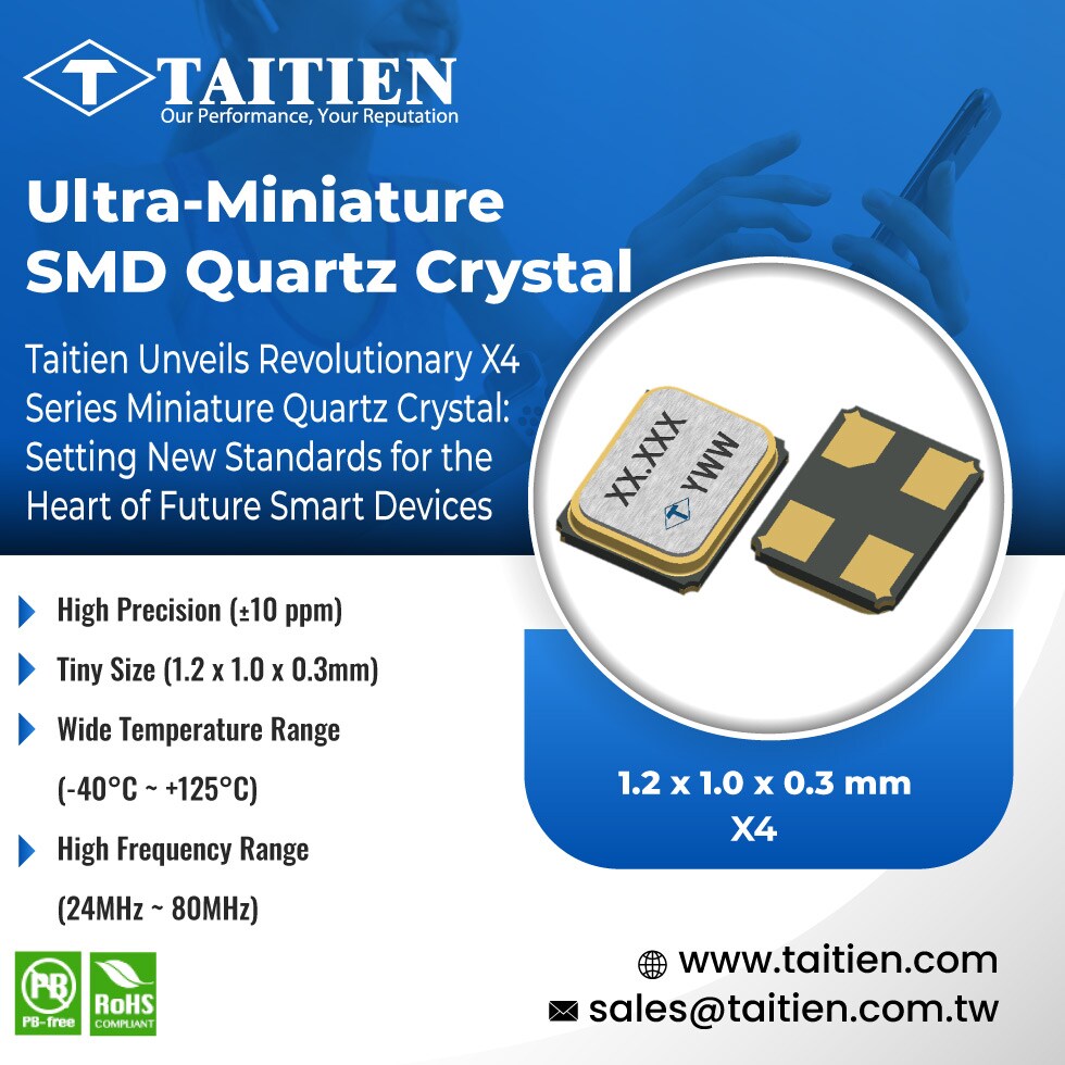 Petite taille (1.2 x 1.0 x 0.3 mm) Large plage de température (-40°C ~ +125°C) Haute plage de fréquence (24 MHz ~ 80 MHz) Smartphones, Tablettes, PCs IoT industriel, Compteurs, Surveillance de l'éclairage/bâtiment Permet la Communication sans Fil : BLE, WiFi, NB-IoT, UWB Taitien est spécialisé dans la fabrication de composants de contrôle de fréquence en quartz. Nos principaux produits incluent X’TAL, OSC, VCXO, et TCXO et nous sommes le premier fabricant à Taiwan à fournir la technique de l'OCXO. Nos gammes de produits complètes permettent un service d'achat tout-en-un. Taitien a été établi en mars 2000 (anciennement Tai Tien Electronic Co., Ltd, fondé en 1976). Nous sommes basés à Taiwan et avons des sites de fabrication à Taiwan, aux États-Unis et en Chine. Les sites d'opération et de vente sont situés à Taiwan, aux États-Unis, en Europe et en Chine. Nos clients proviennent de divers domaines, y compris l'automobile, l'électronique grand public, la technologie de l'information et les télécommunications. Nous valorisons beaucoup l'innovation et investissons considérablement dans la recherche et le développement. Au fil des années, l'entreprise a breveté de nombreuses technologies de fabrication de quartz. Aujourd'hui, Taitien est le leader dans l'industrie du quartz et continue de développer de nouvelles technologies grâce à des recherches approfondies.